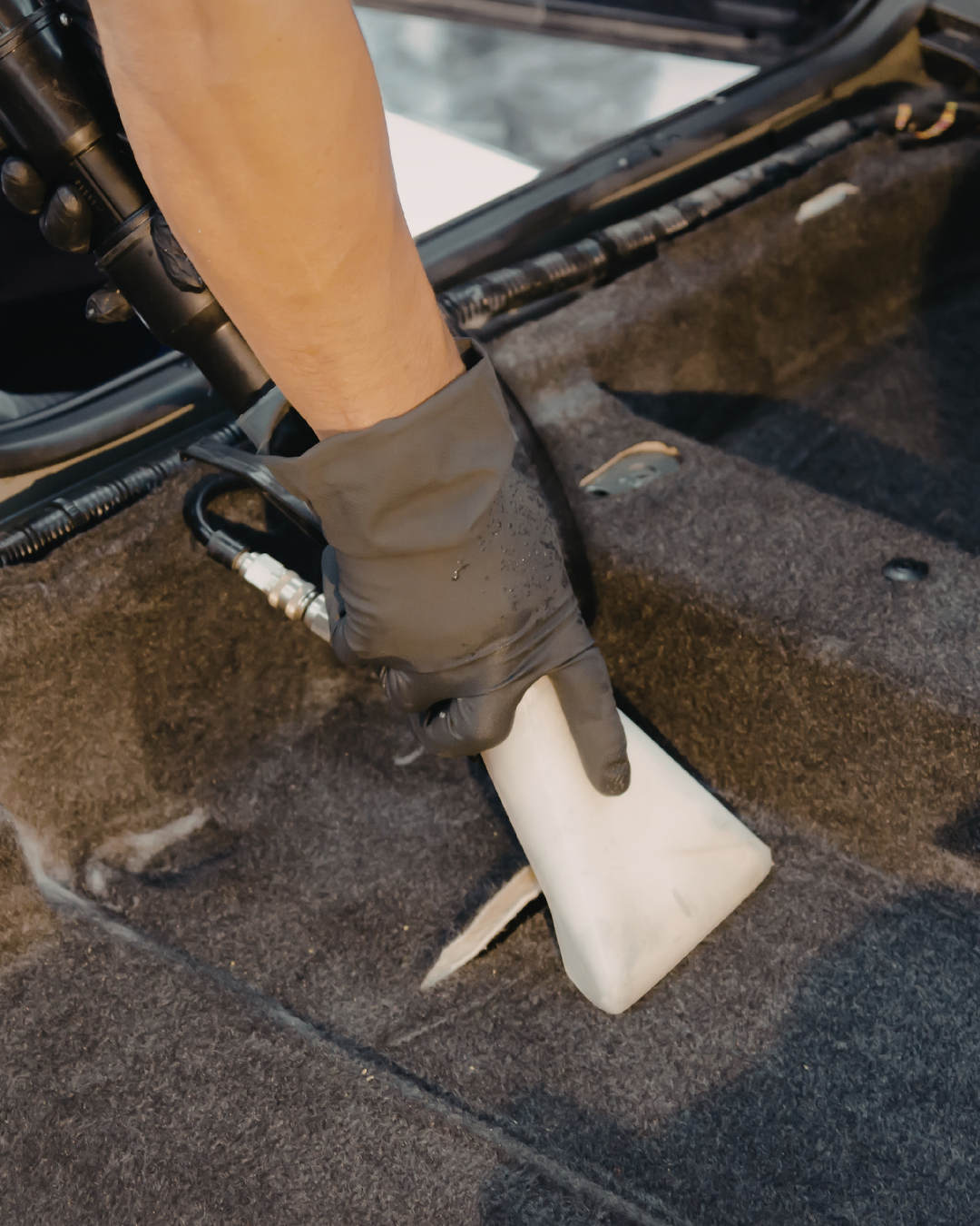 This service removes dirt and light marks. For deep stain removal, we recommend the Seat and Carpet Shampoo detailing service.